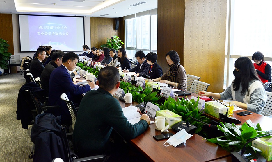 为总结和交流四川省银行业协会(以下简称“川银协”)专业委员会(以下简称“专委会”)2021年度工作,1月11日,川银协专委会联席会议在成都召开。川银协秘书长、各副秘书长以及12位专委会主任或代表出席会议,秘书处各部门代表、监事会监督代表列席会议。会议由杨蕾秘书长主持。